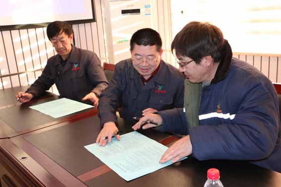 会上,公司总经理佟国山与各生产单位负责人签订了2016年安全生产目标责任状。