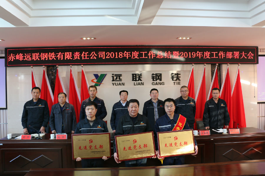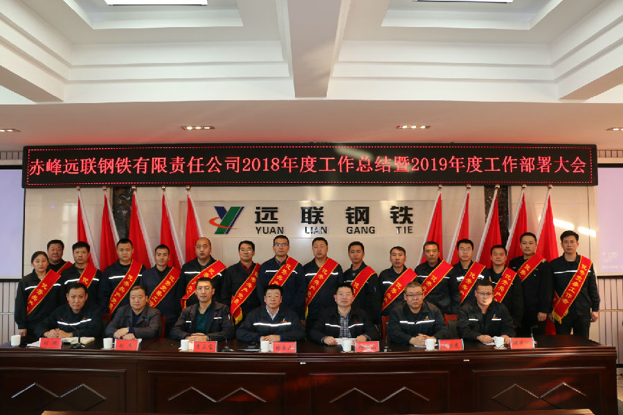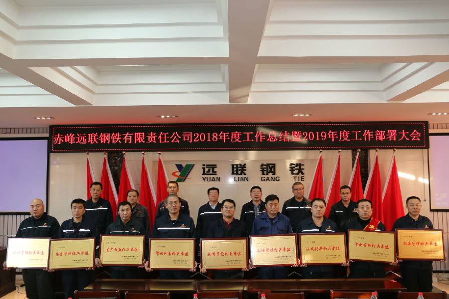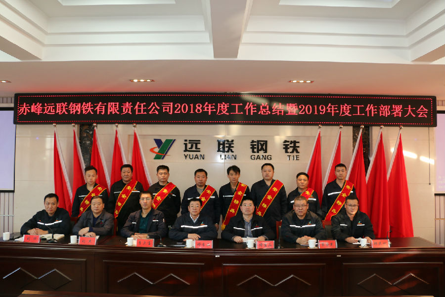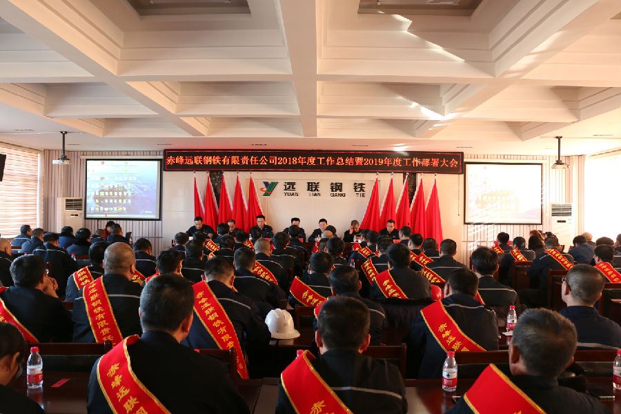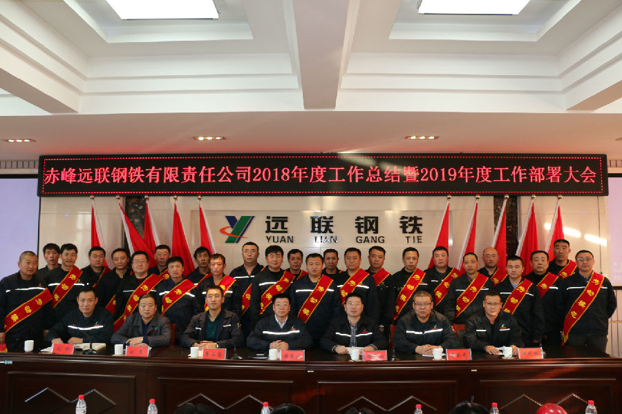 2019年1月22日,赤峰远联钢铁有限责任2018年度工作总结暨2019年工作部署会议在公司五楼会议室召开。公司董事长佟希山、总经理佟国山及公司班子成员出席了会议。公司党委书记刘欣主持了会议。公司副主任以上管理人员和先进单位、先进个人代表共150人参加了本次会议。
