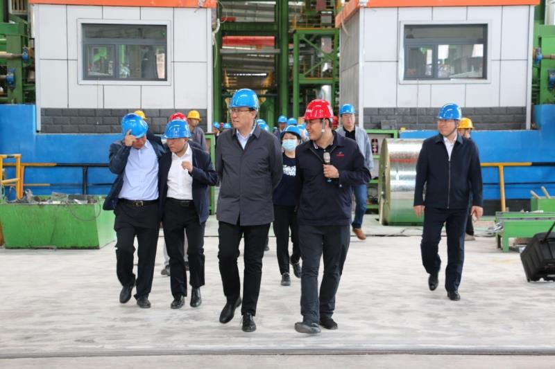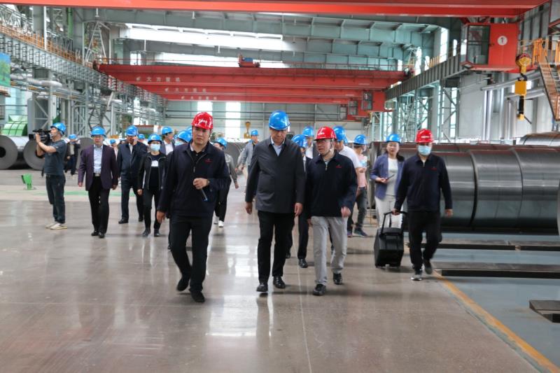 5月21日上午,观摩团一行在市委常委、统战部部长孟和巴特尔的带领下来到我公司。公司总经理佟国山、党委书记刘欣、党委副书记李晓杰在现场迎接,并陪同观摩团参观了公司年产200万吨冷轧镀锌一期项目。刘欣书记代表公司详细介绍了该项目的生产工艺流程,让观摩团成员了解了黑色的热轧带钢蜕变为光亮的镀锌带钢的过程。